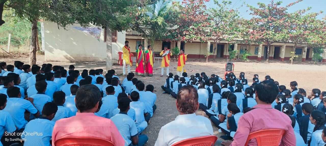 In collaboration with the Taluk Panchayat Muddebihal, the Department of Education, and Saptagiri Foundation Vijayapur, a series of plays and discussion programs were organized to educate school and college students from 15 Gram Panchayat areas of Basavana Bagewadi Taluk. These programs focused on the constitutional rights of India, the life and contributions of Dr. Babasaheb Ambedkar, and his immense achievements. The events were conducted by a team of 12 skilled and experienced artists.